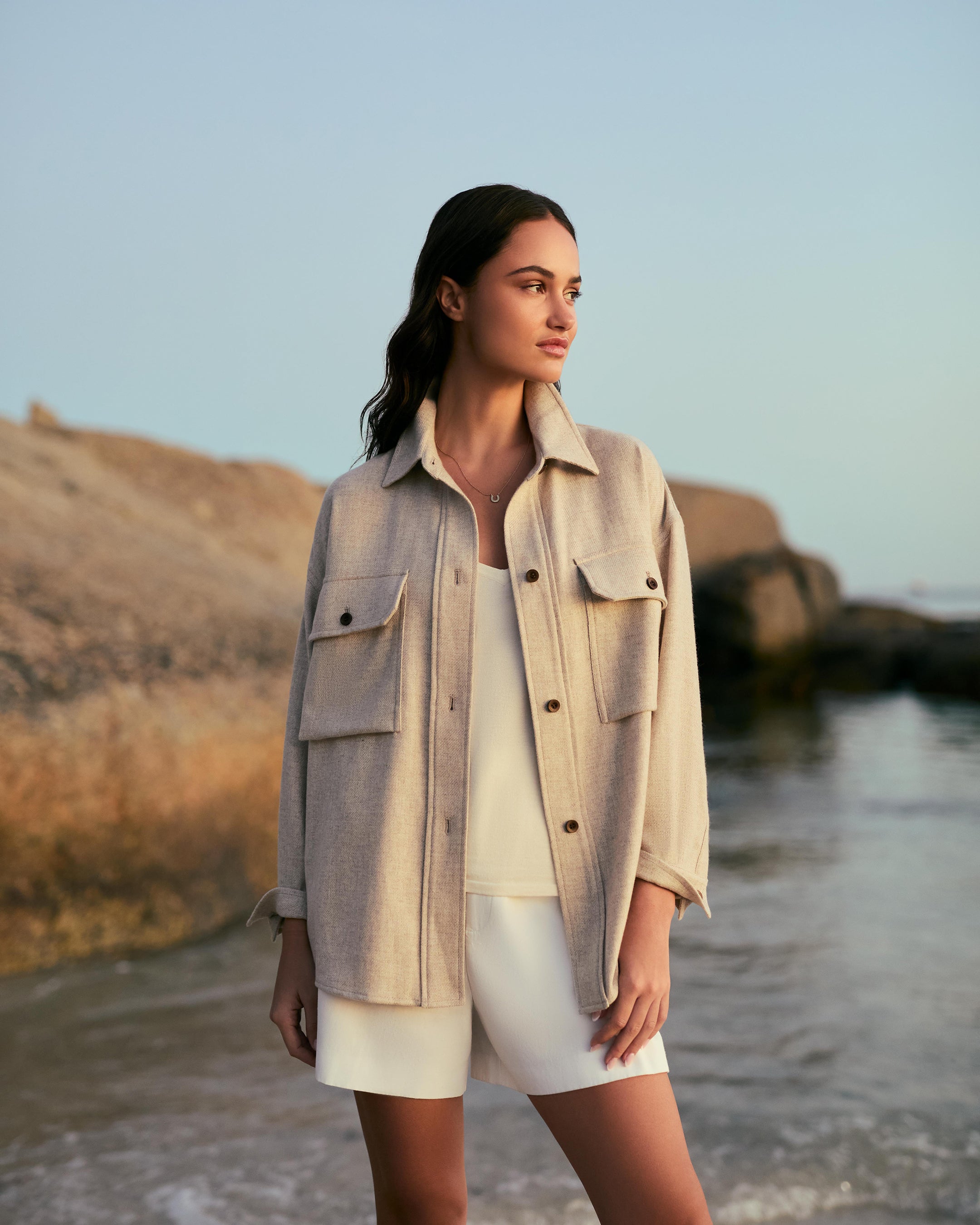 An effortless layer that sits confidently between shirt and jacket, this woven cashmere overshirt is built for days that call for flexibility and polish in equal measure. Relaxed yet refined, this is the piece you will reach for when moving between morning errands, travel days and unplanned pauses along the way.